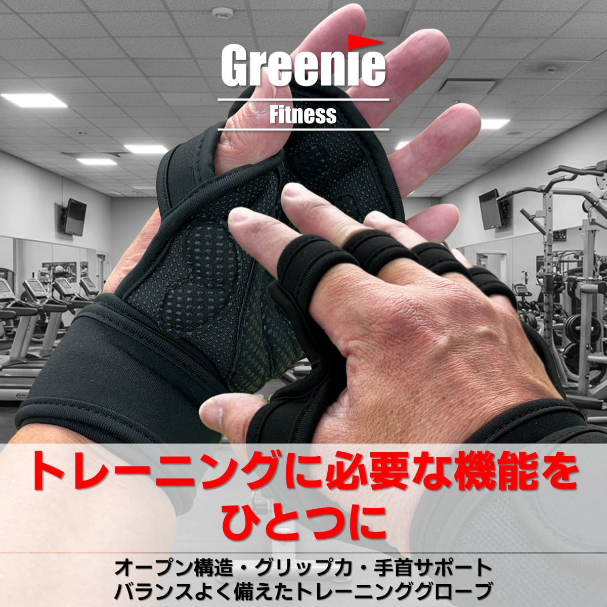 Greenie トレーニンググローブ 筋トレ用 オープンタイプ リストストラップ 手首固定 滑り止め グリップ力 マメ防止 手のひら保護 ジム フィットネス 懸垂 バーベル ダンベル ウエイトトレーニング メンズ レディース GR-2601-01