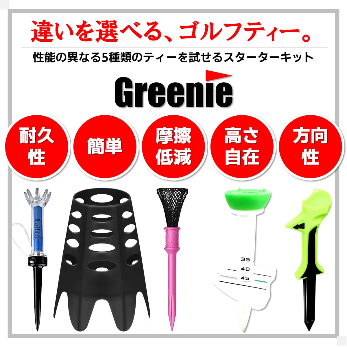 Greenie ゴルフティー 5本 セット 性能別 ゴルフ ティー ロングティー ゴルフ用品 ドライバー ティーショット トルネード プラスチック マグネット ゴム ゴルフボール 摩擦低減 高さ調整 折れにくい 方向性 置くだけ GR-2602-01